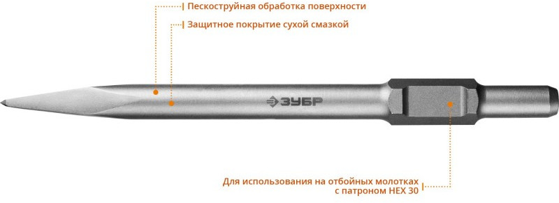 Зубило пикообразное Зубр БУРАН HEX 30 400 мм [29375-00-400]