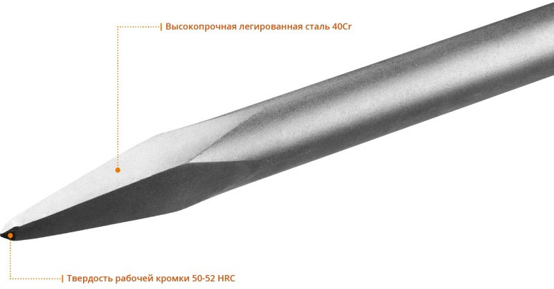 - Высокопрочная легированная сталь гарантирует продолжительный срок службы инструмента