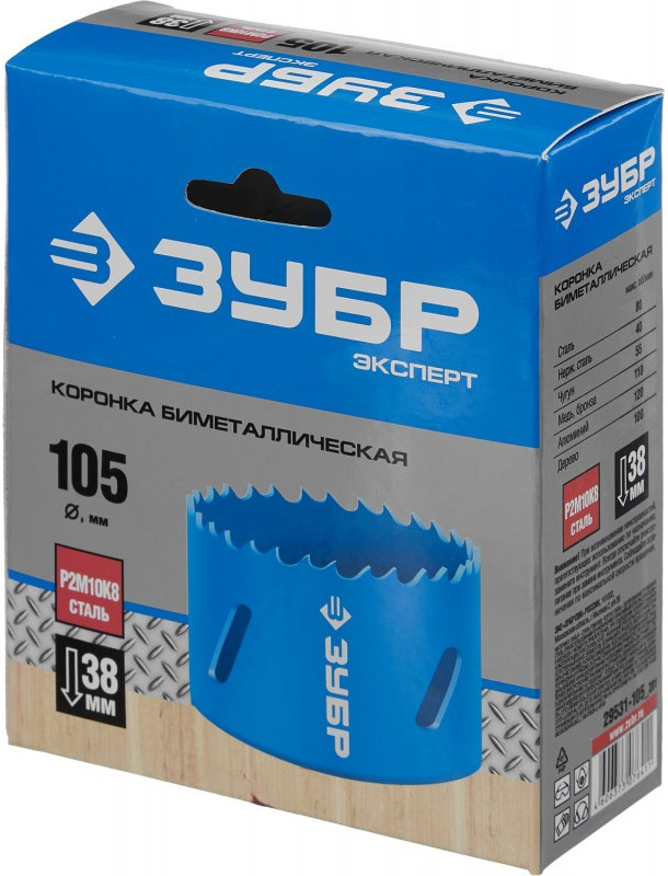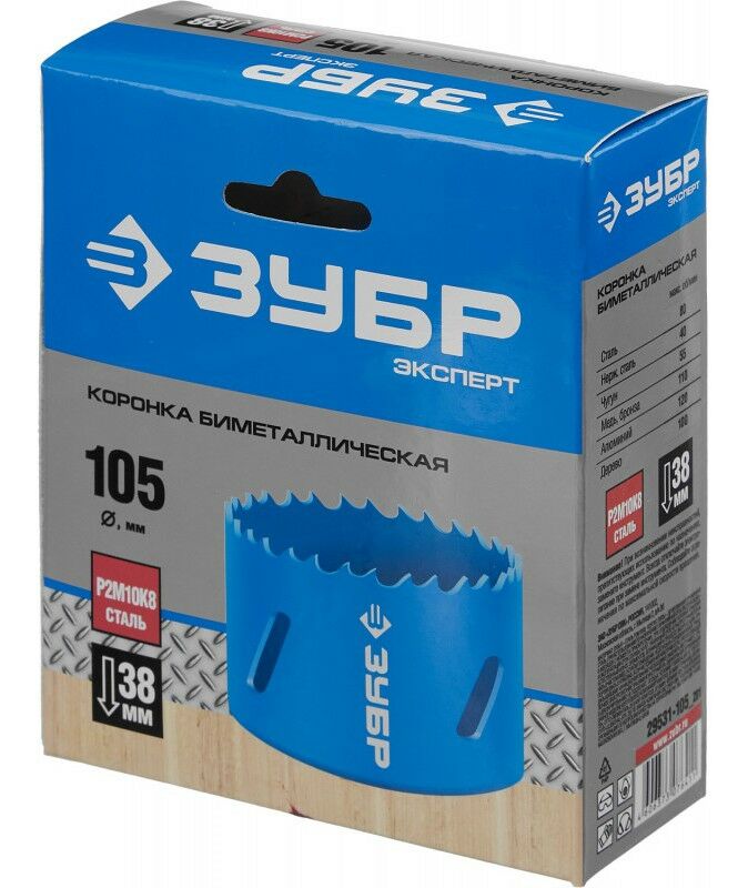 Биметаллическая коронка Зубр 105 мм сталь Р6М5 [29531-105]
