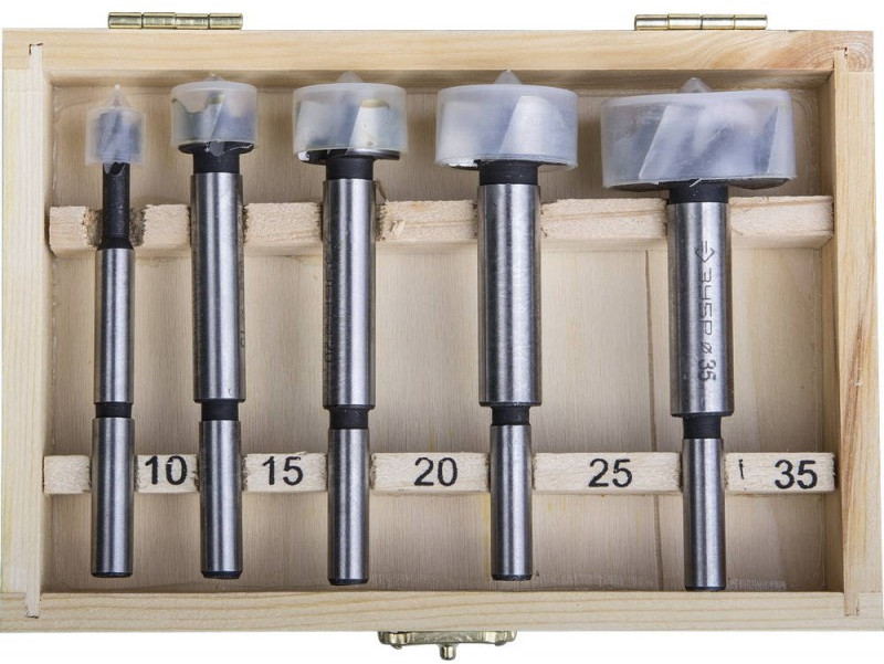 Набор сверл форстнера Зубр 5 шт 10-15-20-25-35мм, по дереву, фанере, ДСП [2994-H5]