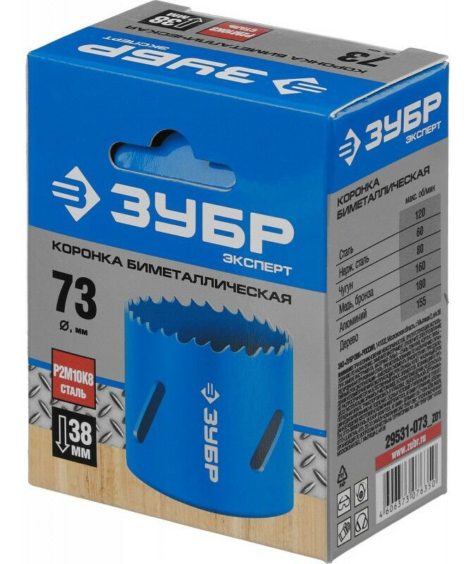 Биметаллическая коронка Зубр 73 мм сталь Р6М5 [29531-073_z01]