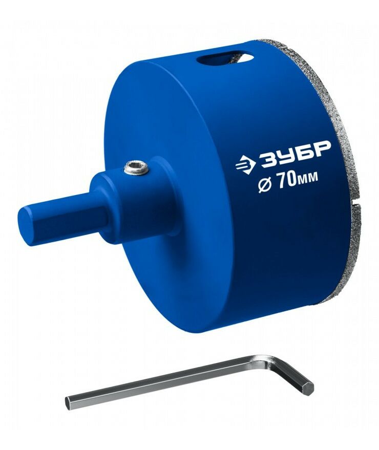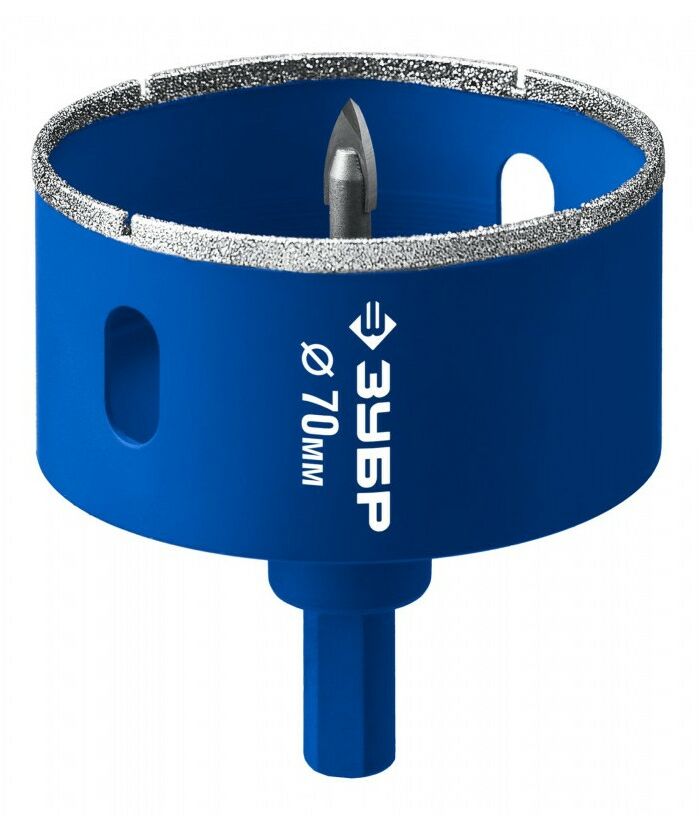 Алмазная коронка Зубр АГК d 70 мм центр. сверло, трехгр. хвост, Р60 [29850-70]
