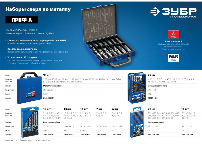 Описание Зубр ПРОФ-А 10шт (1-10мм) [29625-H10]