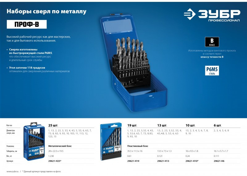 Описание Зубр ПРОФ-В 10шт (1-10мм) [29621-H10]