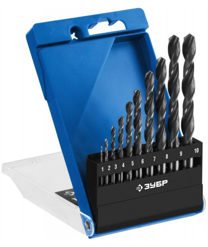 Набор сверл по металлу Зубр ПРОФ-В 10шт (1-10мм) сталь Р6М5, класс В [29621-H10]