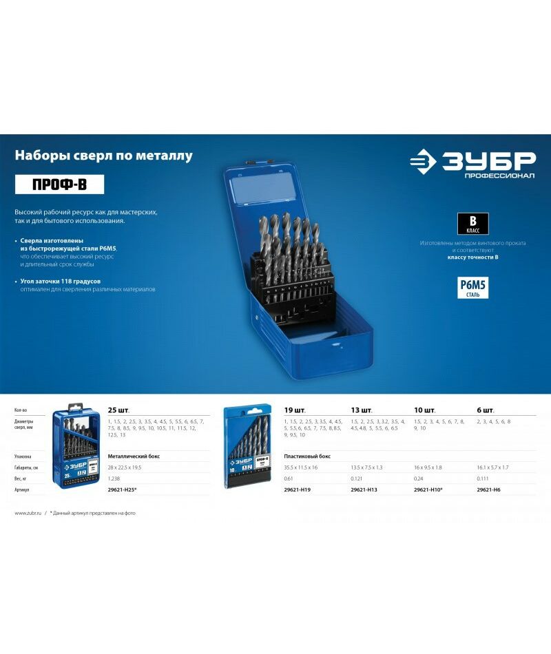 Наличие товара Зубр ПРОФ-В 10шт (1-10мм) [29621-H10]