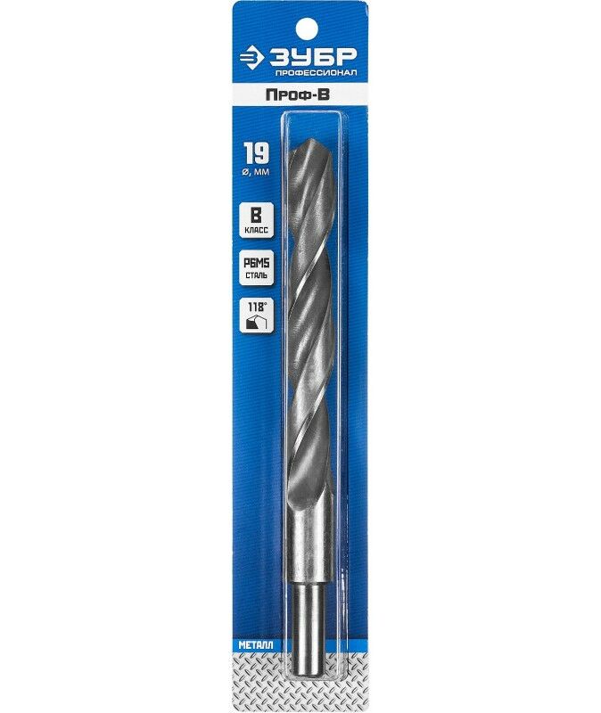 Сверло по металлу Зубр ПРОФ-В 19.0х198мм проточенный хвостовик, сталь Р6М5, класс В [29621-19]
