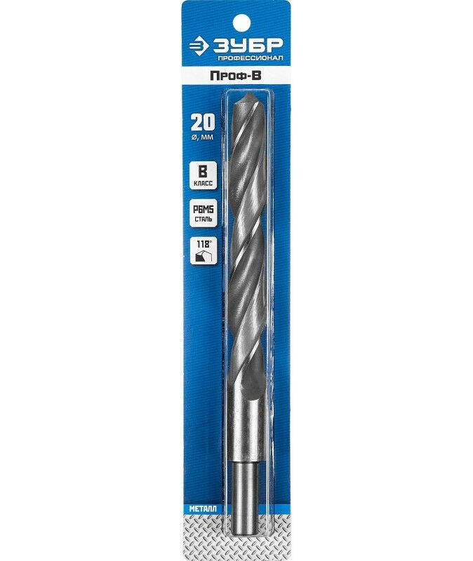 Сверло по металлу Зубр ПРОФ-В 20.0х205мм проточенный хвостовик, сталь Р6М5, класс В [29621-20]