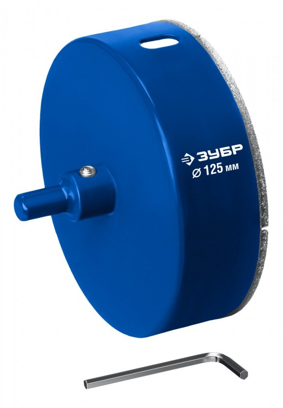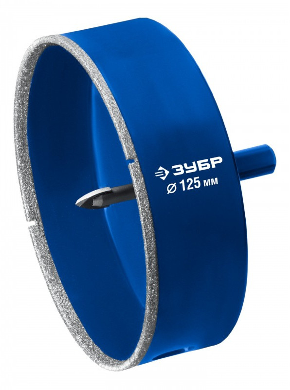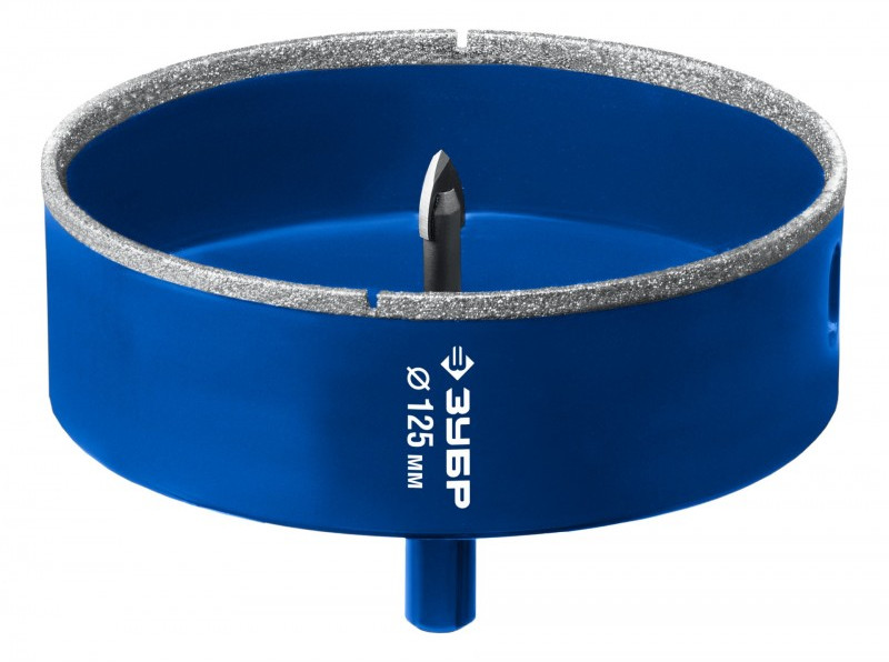 Алмазная коронка Зубр Профессионал АГК d 125 мм центр. сверло, трехгр. хвост, Р60 [29850-125]