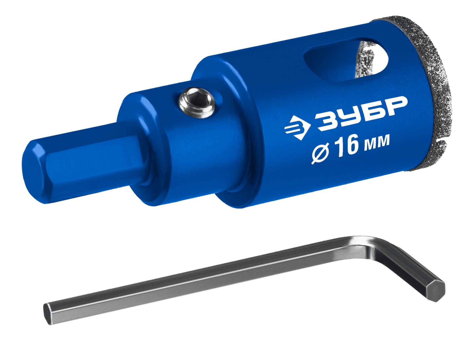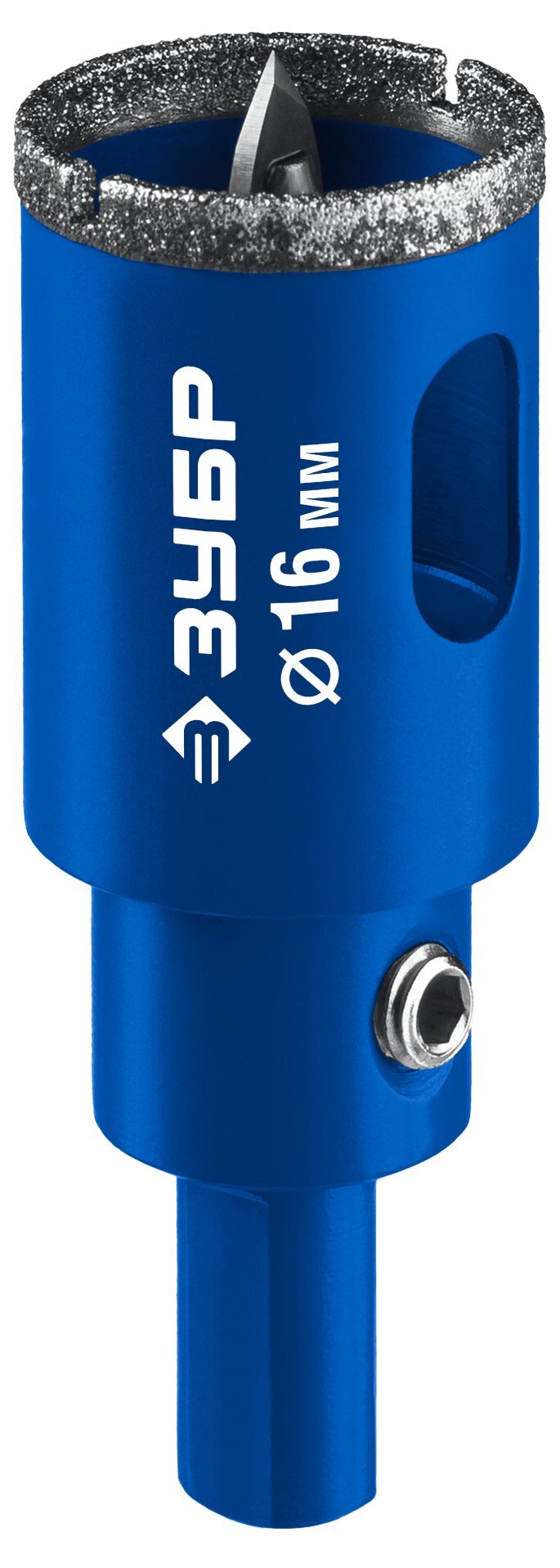 Алмазная коронка Зубр Профессионал АГК d 16 мм центр. сверло, трехгр. хвост, Р60 [29850-16]