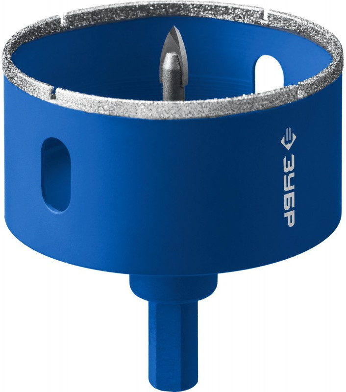 Коронка алмазная с центрирующим сверлом для дрели Зубр Профессионал d 60 мм по керамике и стеклу, Р60, трехгр хвостовик [29850-60]