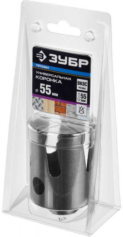Коронка с твердосплавными резцами Зубр Профессионал ПРОУНИВЕРСАЛ 55 мм [29514-55]