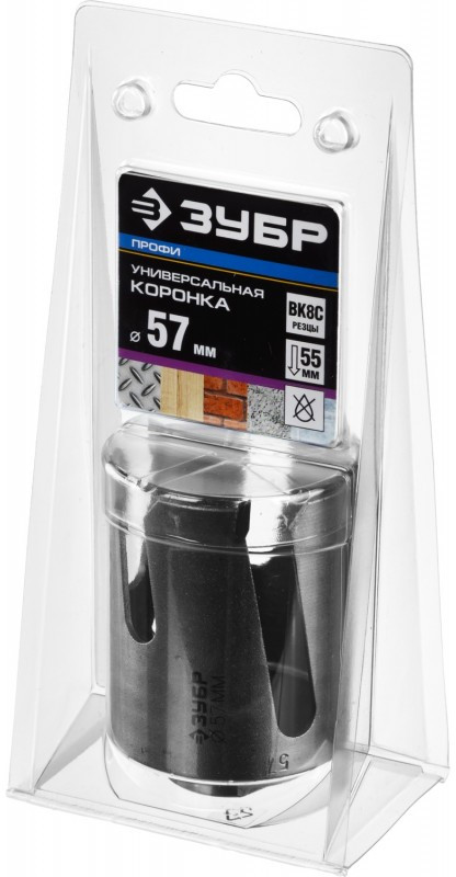Коронка с твердосплавными резцами Зубр Профессионал ПРОУНИВЕРСАЛ 57 мм [29514-57]