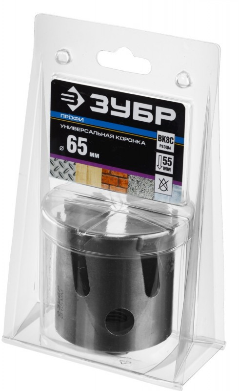 Коронка с твердосплавными резцами Зубр Профессионал ПРОУНИВЕРСАЛ 65 мм [29514-65]