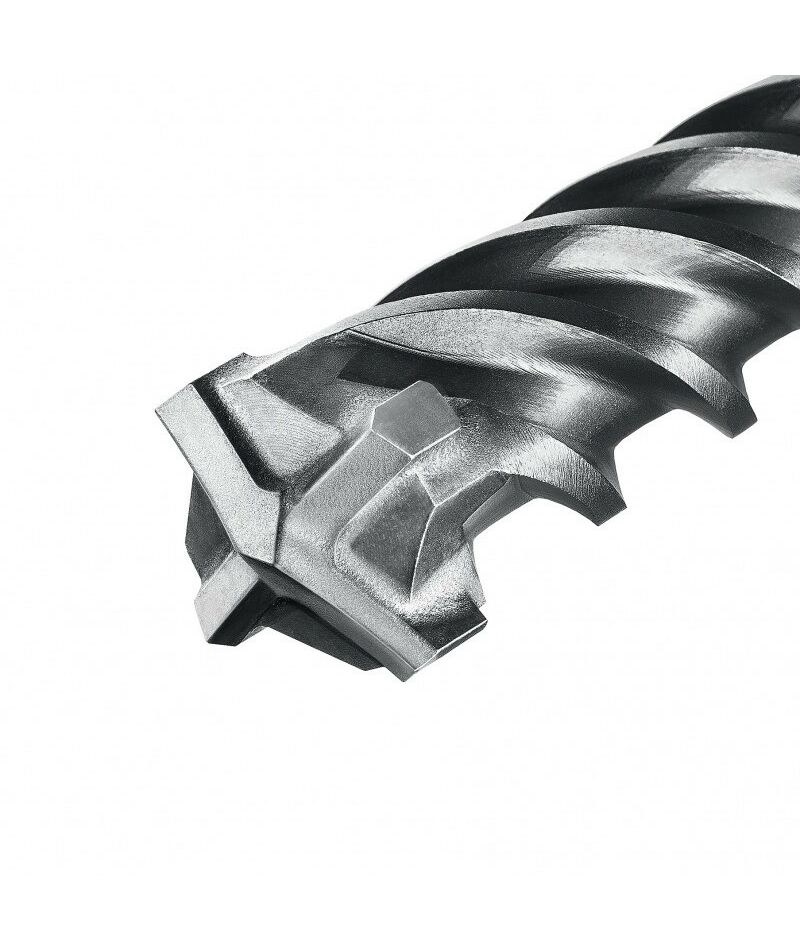 - Геометрическая форма наконечника с 4 кромками предотвращает заедание и поломку, обеспечивая эффективное сверление даже железобетона.