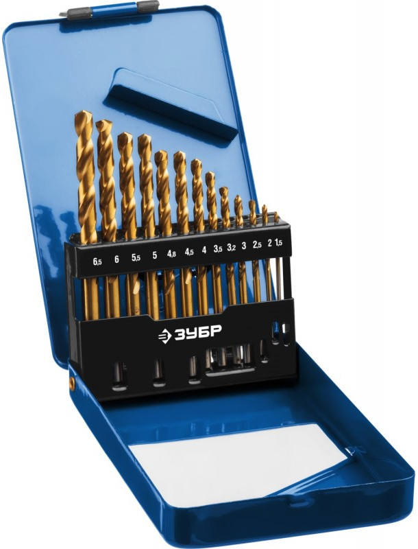 Набор сверл по металлу Зубр ТИТАН 13шт (1.5-6.5мм) сталь Р6М5, класс А, титановое покрытие [29615-H13]