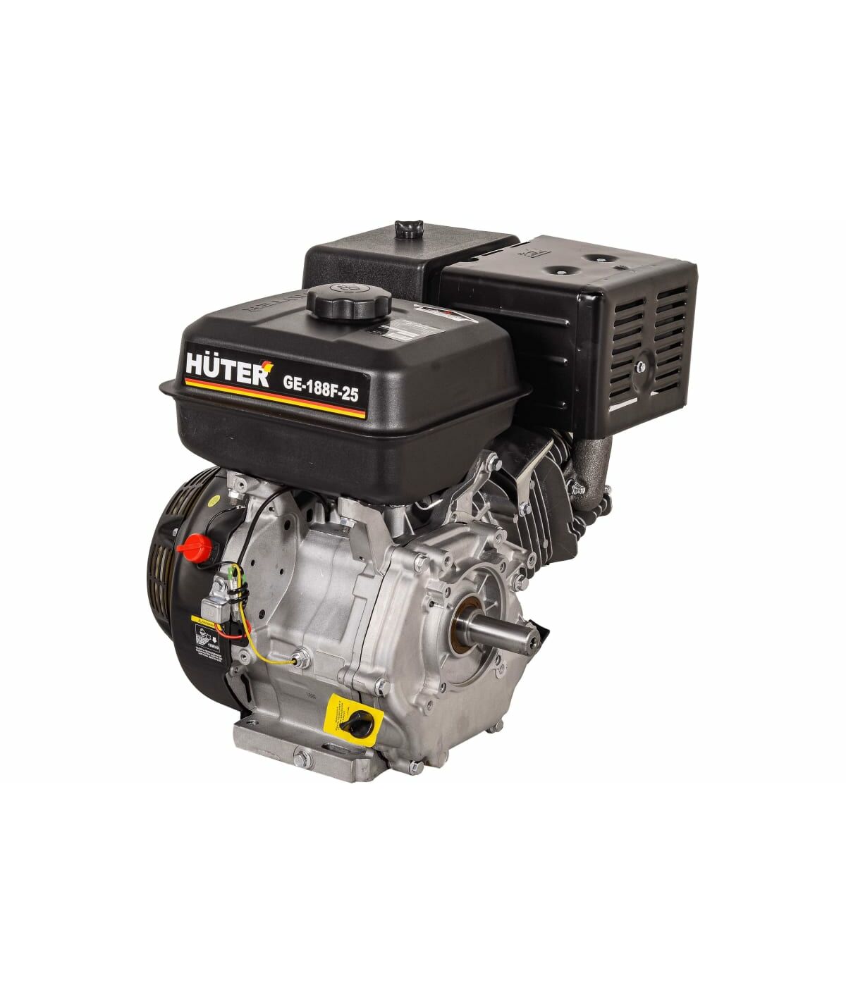 Двигатель бензиновый HUTER GE-188F-25 – предназначен для установки на сельхозтехнику, работающую от данного типа двигателей. Бензодвигатель с объемом цилиндра 389 см³ и мощностью 13 л.с. относится к линейке силовых установок средней мощности. Двигатель GE-188F-25 работает на бензине, с октановым числом не ниже 92.