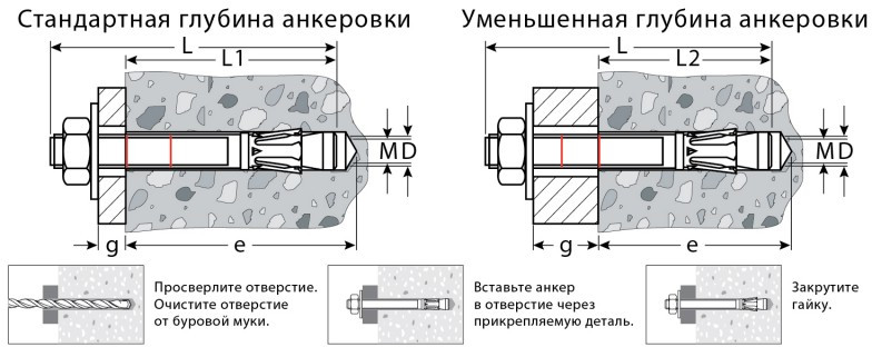 - Стандартная глубина анкеровки, мм: 103