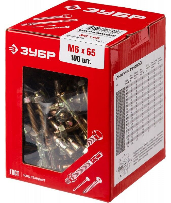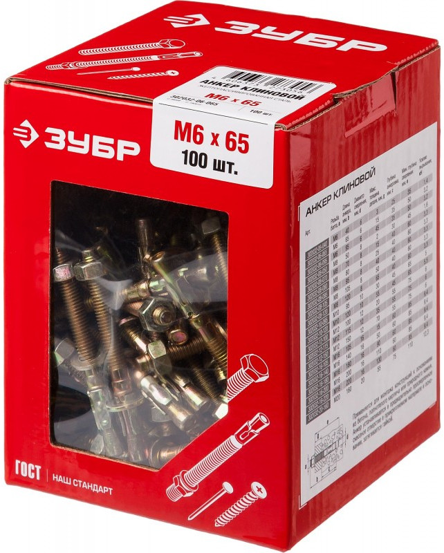 Клиновой анкер Зубр М6 х 65 мм 100 шт [302032-06-065]