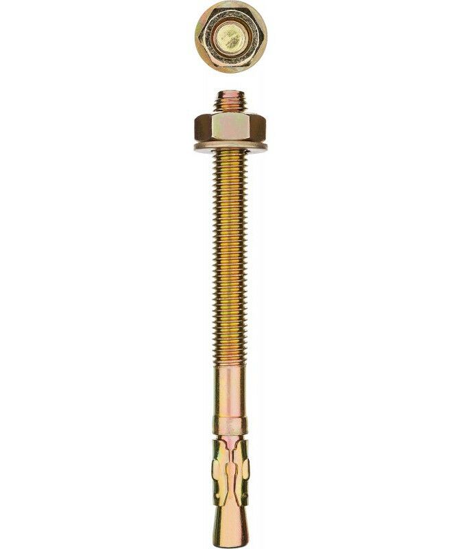 Для монтажа конструкций к полнотелым основаниям: поверхностям из бетона, полнотелого кирпича или природного камня. Анкер устанавливается в предварительно просверленное и очищенное от буровой муки отверстие и расклинивается при закручивании гайки