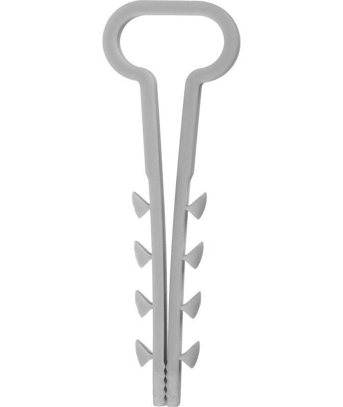 Для быстрого монтажа кабелей, проводов, труб ПВХ, гофрорукавов и т.п. к полнотелым основаниям (бетон, кирпич, природный камень). Порядок установки: 1. Высверливается отверстие диаметром 6 мм. 2. Провода охватываются дюбель-хомутом. 3. Дюбель-хомут с проводами вставляется рукой в отверстие до упора.