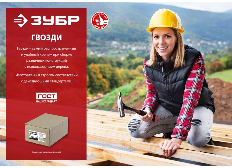 - Большая плоская головка гвоздя предотвращает разрыв мягких материалов в месте крепления