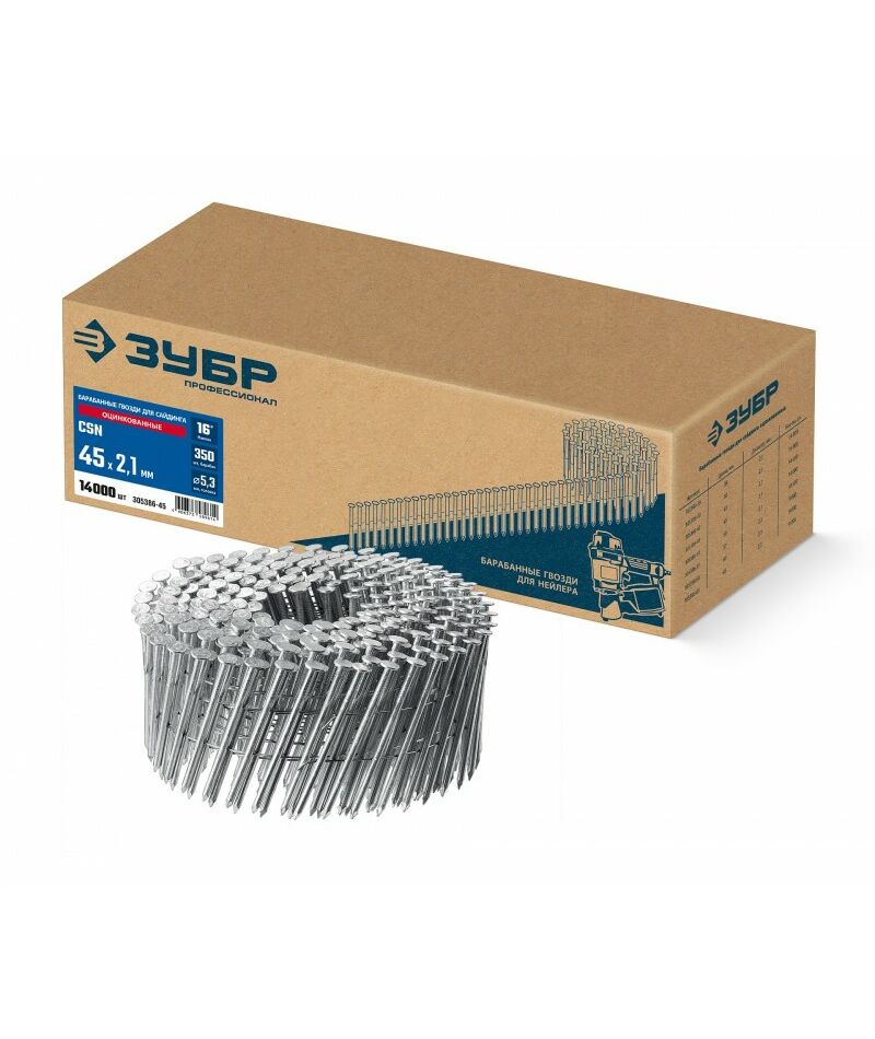 Барабанные гвозди для сайдинга оцинкованные Зубр CSN 45 х 2.1 мм 14000 шт [305386-45]