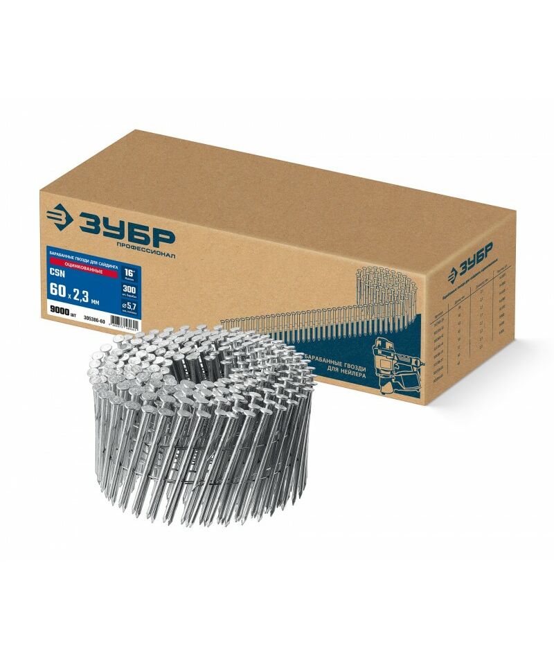 Барабанные гвозди для сайдинга оцинкованные Зубр CSN 60 х 2.3 мм 9000 шт [305386-60]