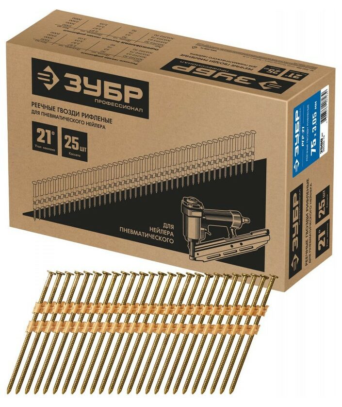 Реечные гвозди рифленые Зубр РГР-21 75 мм 21°, 2500 шт [305392-75]