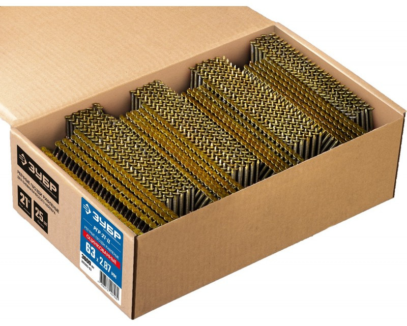 Реечные гвозди рифленые оцинкованные Зубр РГР-21-Ц 63 мм 21°, 3000 шт. [305393-63]