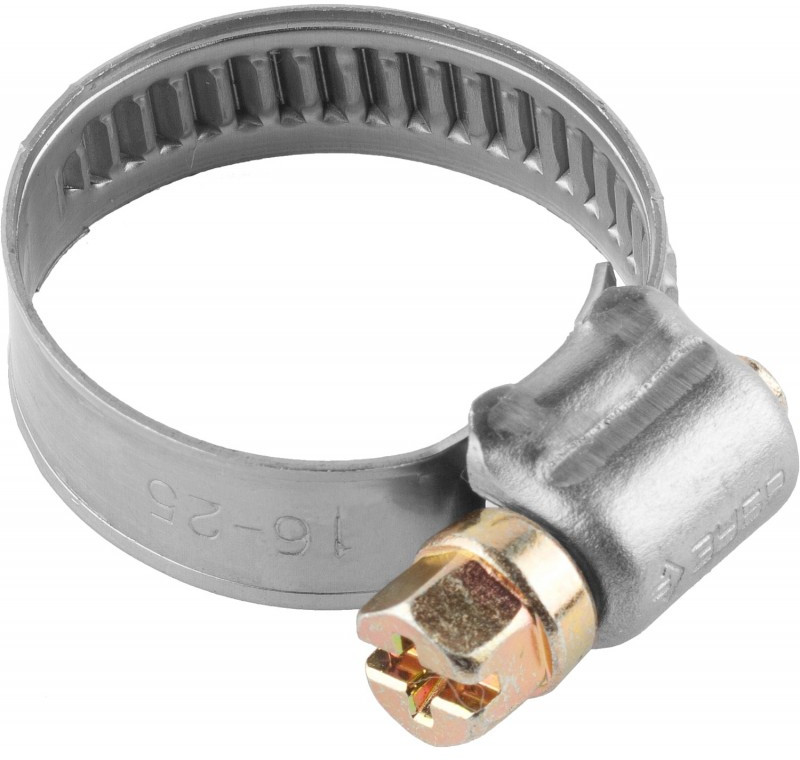 - Червячный хомут состоит из штампованной нержавеющей ленты и винта с червячной резьбой. Накатная лента имеет гладкую внутреннюю поверхность, которая предотвращает повреждения поверхности скрепляемых материалов. При вращении винта лента сжимается, благодаря чему создается надежное и герметичное соединение шлангов, различных труб, и т.д. Червячный винт снабжен шестигранной головкой под ключ 6 мм и шлицем SL, что позволяет использовать при монтаже гаечный ключ или шлицевую отвертку.