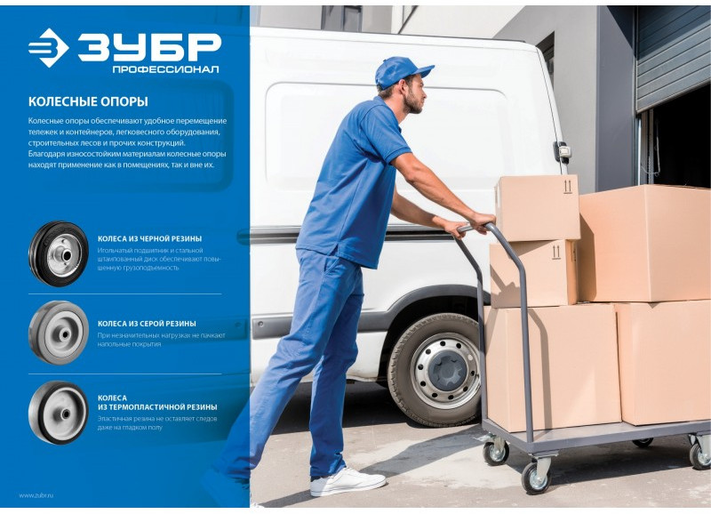 - Использование. Для перемещения тележек и легковесного оборудования. Рекомендуется для полов с неровностями и препятствиями, а также для использования внутри помещений и на улице.