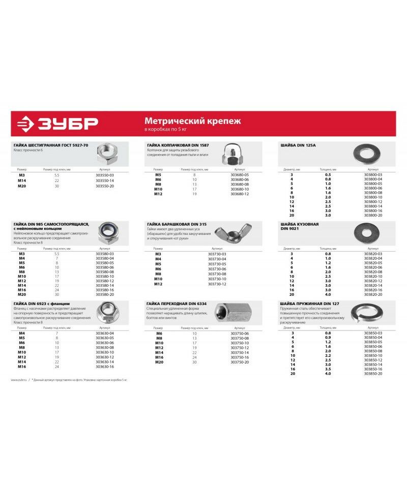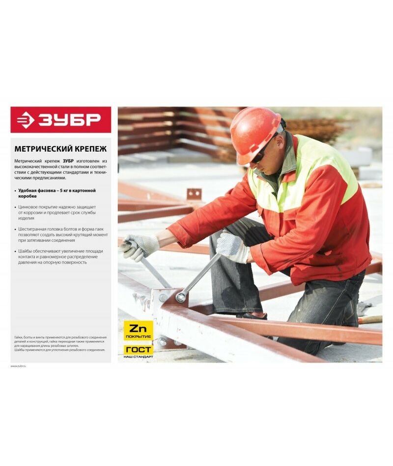 Гайка Зубр M10 ГОСТ 5927-70, 5 кг, кл. пр. 6, оцинкованная [303550-10]