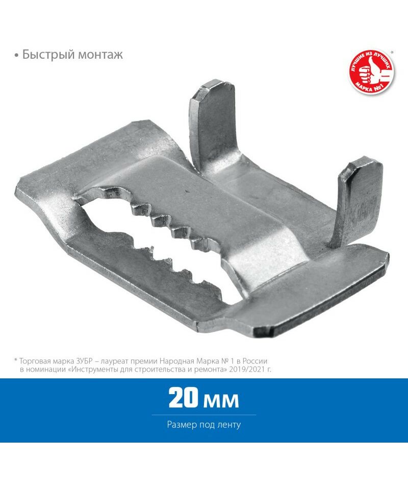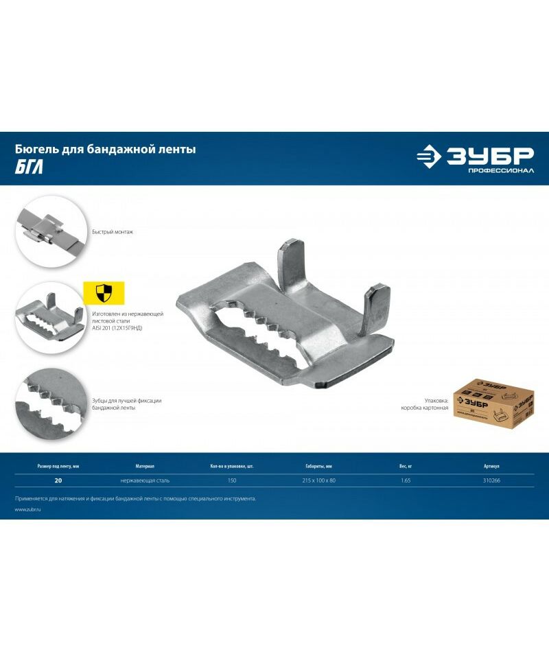 Бюгель для бандажной ленты Зубр Профессионал 20мм 150 шт, нержавеющий, БГЛ [310266]