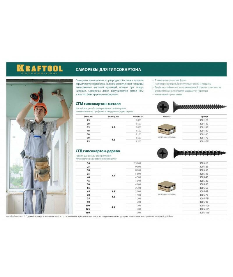 Саморезы СГД гипсокартон-дерево KRAFTOOL 150 х 4.8 мм 300 шт, фосфатированные [3005-150]