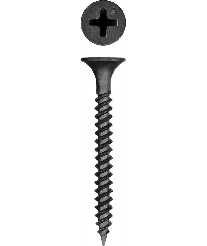 - Частый шаг резьбы обеспечивает надежное крепление гипсокартона к металлическим профилям или твердым породам дерева.