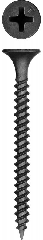 - Частый шаг резьбы обеспечивает надежное крепление гипсокартона к металлическим профилям или твердым породам дерева.