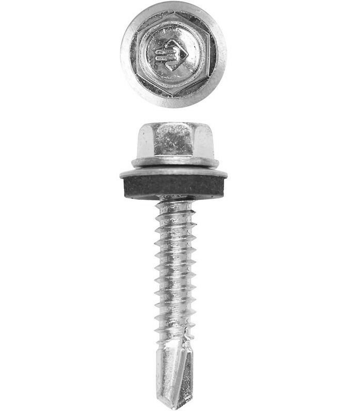 - Кровельные саморезы изготовлены из стального прутка с высоким содержанием углерода. Контроль за геометрией самореза начинается с калибровки прутка и заканчивается тщательной проверкой размеров готового изделия. Нормативная твердость стали достигается термической обработкой. Поверхностная твердость мин. 560HV, твердость в сердцевине 240-425HV. Шайба с прокладкой EPDM толщиной 2мм плотно прижимается к кровельному материалу, герметизируя просверленное отверстие. Шестигранная головка выдерживает большой крутящий момент и значительно облегчает вкручивание самореза.