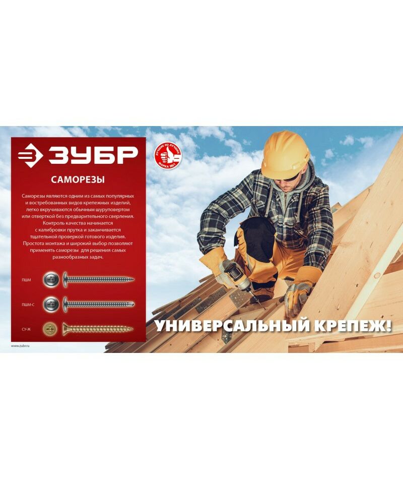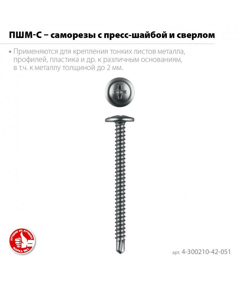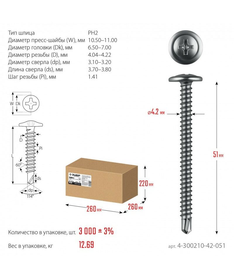 Саморез с пресс-шайбой и сверлом Зубр ПШМ-С 51 х 4.2 мм цинк, 12.69 кг [4-300210-42-051]