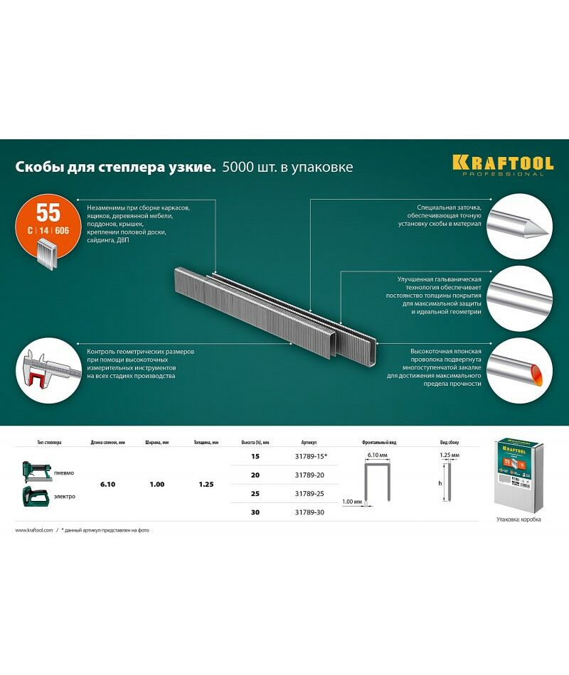 Скобы Kraftool изготовлены из закаленной проволоки с использованием новейших технологий специально для промышленного и профессионального преминения.