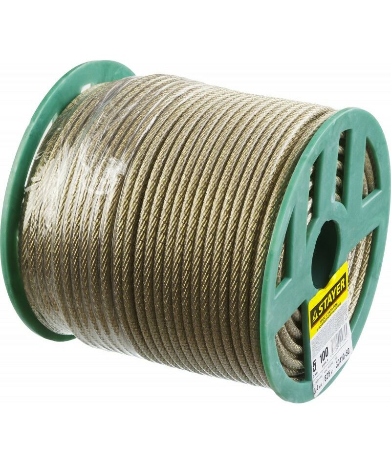 Трос стальной в полимерной оболочке STAYER d=5,0 мм, L=100 м [30410-50]