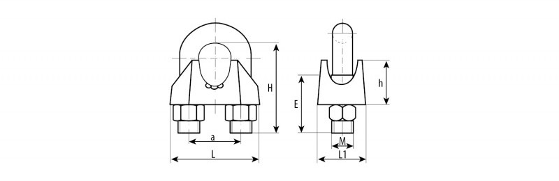 Для формирования петель на концах троса. Используются на тросах без оплетки ПВХ (если трос имеет оплетку, ее необходимо снять перед установкой зажима). Свободный конец троса закладывается в зажим (конец троса должен выходить из зажима на расстояние не менее 1/2 диаметра троса). Далее в петлю троса закладывается коуш, после которого трос помещается в зажим с другой стороны отверстия. Сверху помещается прижимная скоба, которую небходимо крепко зафиксировать с помощью гаек. Свободный конец троса рекомендуется обмотать изолентой для предотвращения разматывания троса после установки. Перед использованием необходимо убедиться, что гайки на зажимах закручены полностью. Рекомендуемое расстояние между зажимами равно шестикратному диаметру троса. Минимальное количество зажимов - 3 шт.