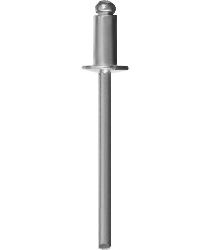 - Корпус заклепки изготовлен из алюминиевого сплава AlMg1.5 c улучшенными механическими свойствами: высокая пластичность, повышенная коррозионная стойкость. Стержень заклепки изготовлен из оцинкованной стали.