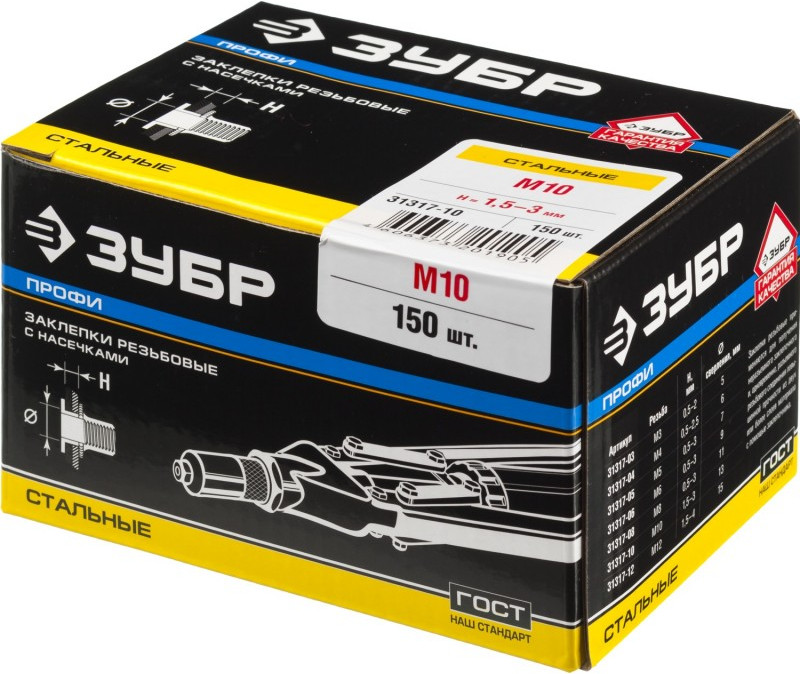 Стальные резьбовые заклепки с насечками Зубр Профессионал М10 станд.бортик, 150 шт [31317-10]