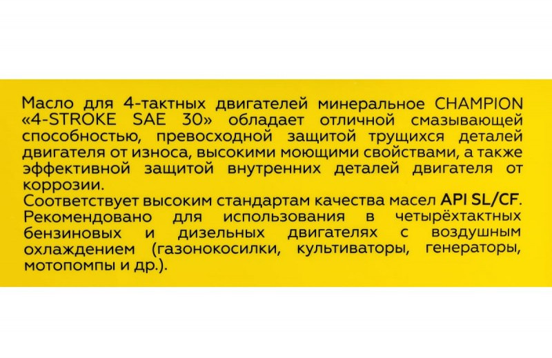 Масло 4-тактное минеральное Champion SAE 30 1 л [952852]