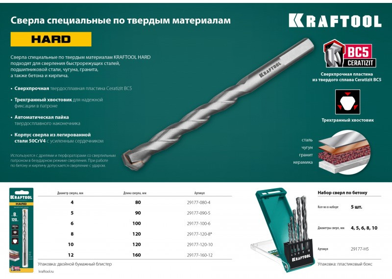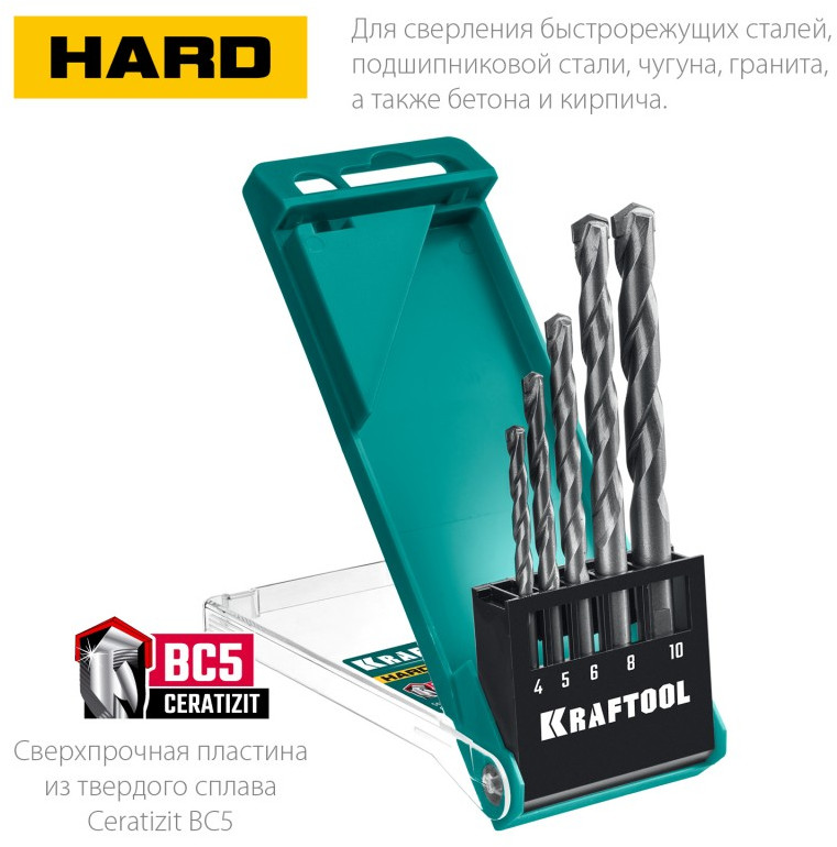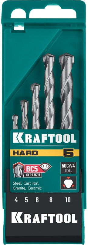 Набор сверл по твёрдым материалам KRAFTOOL Hard 5 шт 4-5-6-8-10 мм [29177-H5]