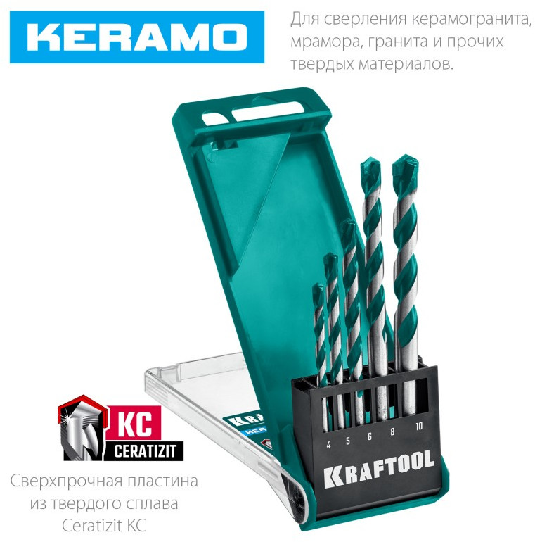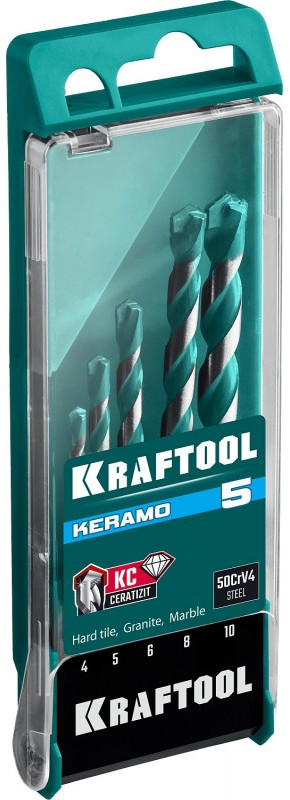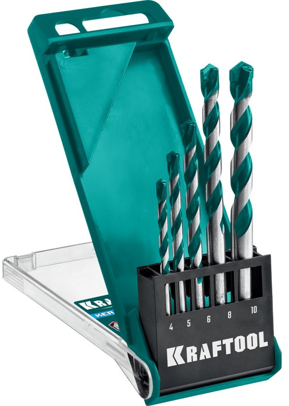Набор сверл по керамограниту KRAFTOOL Keramo 5 шт 4-5-6-8-10 мм, с твердосплавной пластиной [29175-H5]