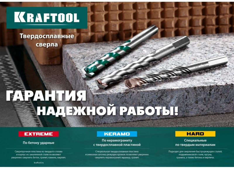 Благодаря специальной твердосплавной пластине и алмазной заточке режущих кромок сверла KERAMO уверенно проходят через керамогранит, мрамор, гранит и прочие твердые материалы.