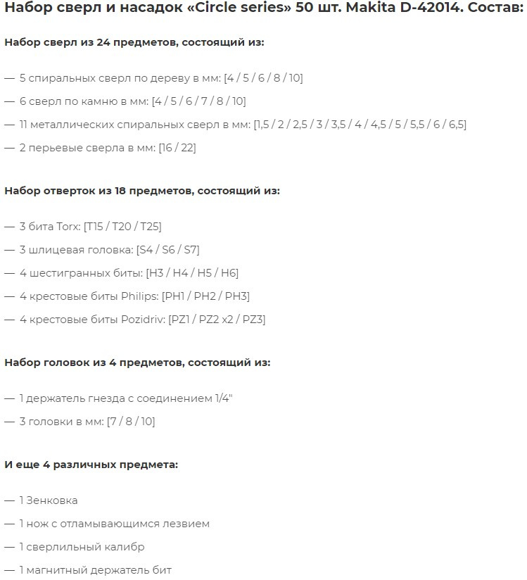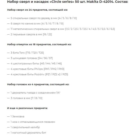 Набор оснастки для шуруповертов Makita D-42014 универсальный, 50 предиетов