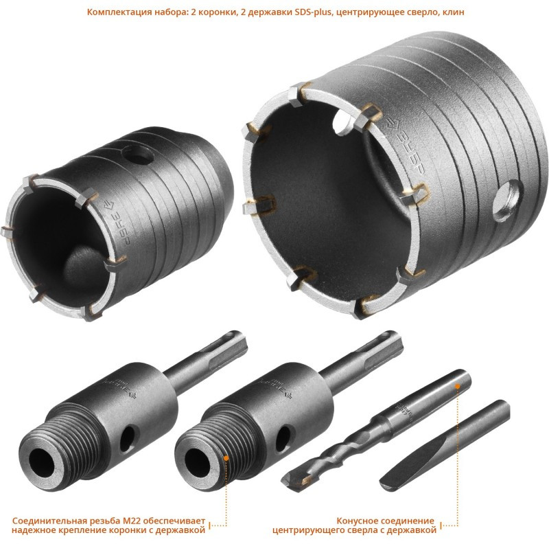- Резьбовая посадка М22 обеспечивает надежное крепление коронки с державкой